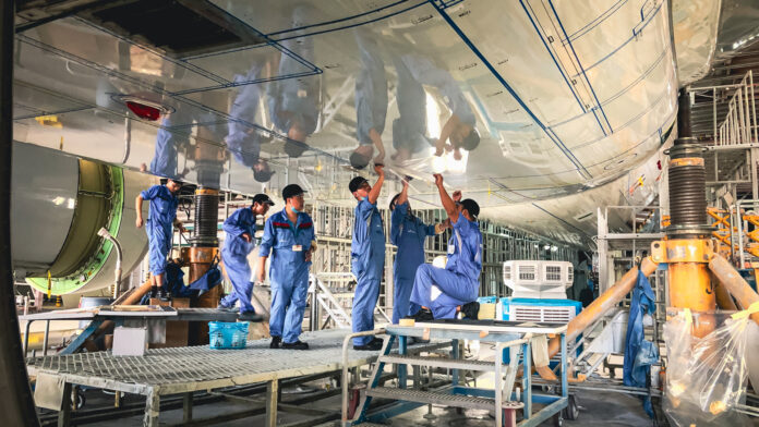 A estrutura da superfície é composta por riblets, pequenos pedaços de metal, medindo cerca de 50 micrômetros, que imitam as propriedades da pele de tubarão. Isso otimiza a aerodinâmica em partes relacionadas ao fluxo da aeronave.